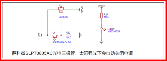 4.6圖5在強光下薩科微SLPT0805AC-LB1光晶體三極管導通,Q7截止,實現了白天日照時候自動關閉太陽能燈板。
