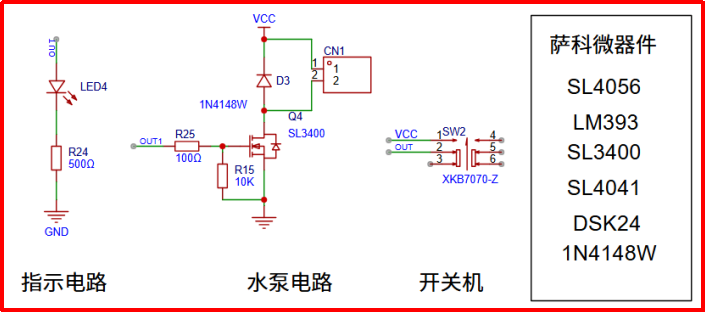 這里用了多顆薩科微,比如物料薩科微肖特基DSK24.最大直流反向耐壓40V 2A最大整流電流,根據負載電流選型時候計算在這里完全夠用了。薩科微SL4041是一款P溝道MOS管導通內阻只有30m?,耐壓40V功耗1.4W等特點在一般消費場景完全夠用,賣的也是非常火熱,用戶也可以在薩科微品牌官網m.zgthjj.com查看對應的規格書。