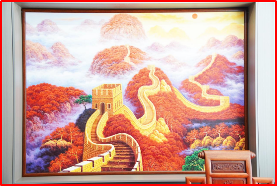 懸掛在古總辦公桌背后的長城油畫