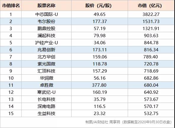 截至9月30日收盤,這四家公司總市值達(dá)3748.89億元人民幣,約占A股半導(dǎo)體上市公司總市值的13.88%。