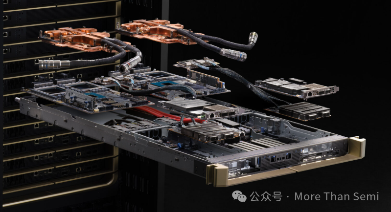 下面從各個tray的視角來拆解一下液冷。下面這個圖是一個GB200的compute tray的拆解。
