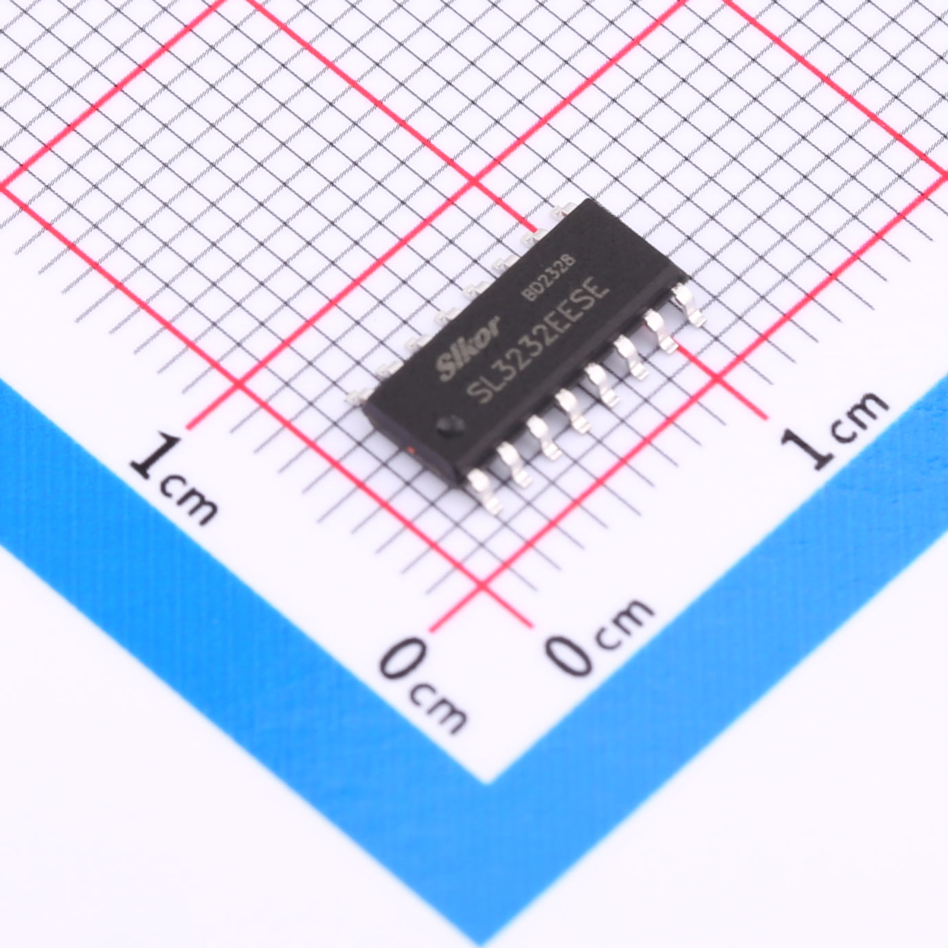 薩科微slkorRS232芯片SL3232E UCC(V):3V ICC(mA):1mA SR(V/μs):6V/μs ST(kbit/c):120kbit/c Package:SOP-16